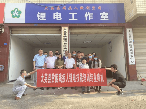 由大英縣殘聯(lián)、蒲迅技術有限公司及社區(qū)服務中心為“大英縣殘疾人微創(chuàng)空間鋰電池工作室”進行幫扶