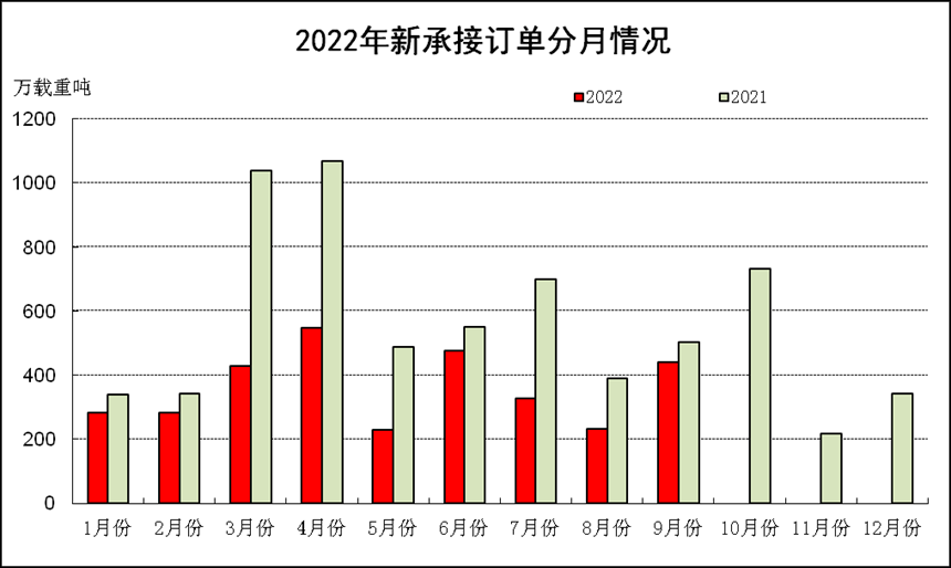 1-9月,我國造船完工量前10家企業(yè)集中度為68.1%,比2021年底下降1.2個百分點;新承接訂單量前10家企業(yè)集中度為67.9%,比2021年底下降1.4個百分點;手持訂單量前10家企業(yè)集中度為67.2%,比2021年底下降2.3個百分點。
