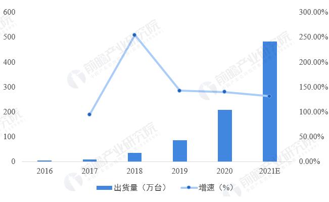 2016-2020年,全球便攜式儲(chǔ)能設(shè)備出貨量呈快速增長(zhǎng)態(tài)勢(shì)。2020年,全球便攜式儲(chǔ)能設(shè)備出貨量達(dá)到了208.8萬臺(tái),相比2019年增長(zhǎng)了140.28%。預(yù)計(jì)2021年,全球便攜式儲(chǔ)能設(shè)備出貨量將突破480萬臺(tái)。